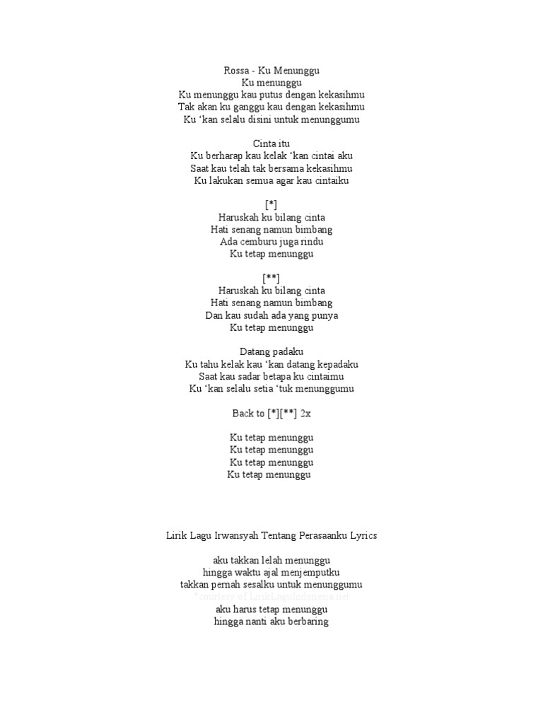 Di amerika sendiri bawakan lagu sendiri nah itu pun harus bikin daftar lagu yang akan dinyanyikan kemudian harus membayar ke lembaga pengumpul uang hak cipta. Cinta bilang cinta Sayang bilang sayang Jangan kau gantung aku dengan. Sampailah disini kisah kita kasih.